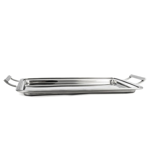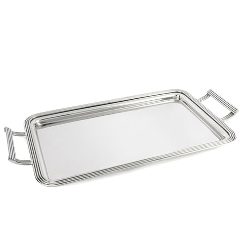 Ein stilvoller Klassiker für besondere Anlässe: Inspiriert vom Art-Déco-Stil des legendären Cloud Club im New Yorker Chrysler Building, verbindet das Tray aus glänzendem Silbermetall luxuriösen Retro-Charme mit funktionaler Vielseitigkeit. Ob zum Servieren edler Getränke oder als dekorative Basis für Wohnaccessoires – dieses Tablett setzt stets einen ausserordentlich exklusiven Akzent.