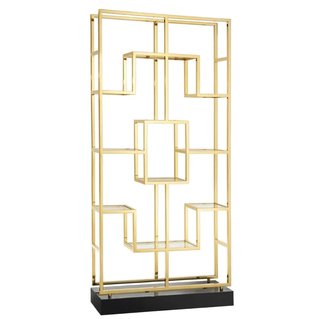 Das Kabinettgestell Crowne überzeugt mit einer eindrucksvollen Höhe von 240 cm und einer offenen, geometrisch komponierten Struktur aus hochwertigem Metall. Seine einzigartige Linienführung macht es zugleich zu Regal, Raumteiler und dekorativem Designobjekt, das jedem Interieur architektonische Präsenz verleiht. Die gestaffelten Ebenen setzen Kunstobjekte, Pflanzen oder Ihre Lieblings-Deko mit absolutem Wow-Effekt in Szene.